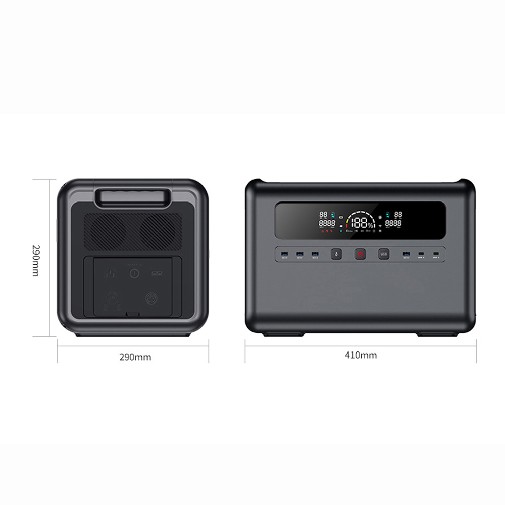 La central eléctrica portátil se equipa de la batería de 2400Wh LiFePO4, que contiene el microprocesador actualizado, apoya la función de carga rápida y más de 3000 veces de reciclaje. Las salidas de corrienta alterna puras de la tecnología de la onda sinusoidal entregan poder estable y seguro, sin daño y reducen ruido audible y eléctrico.